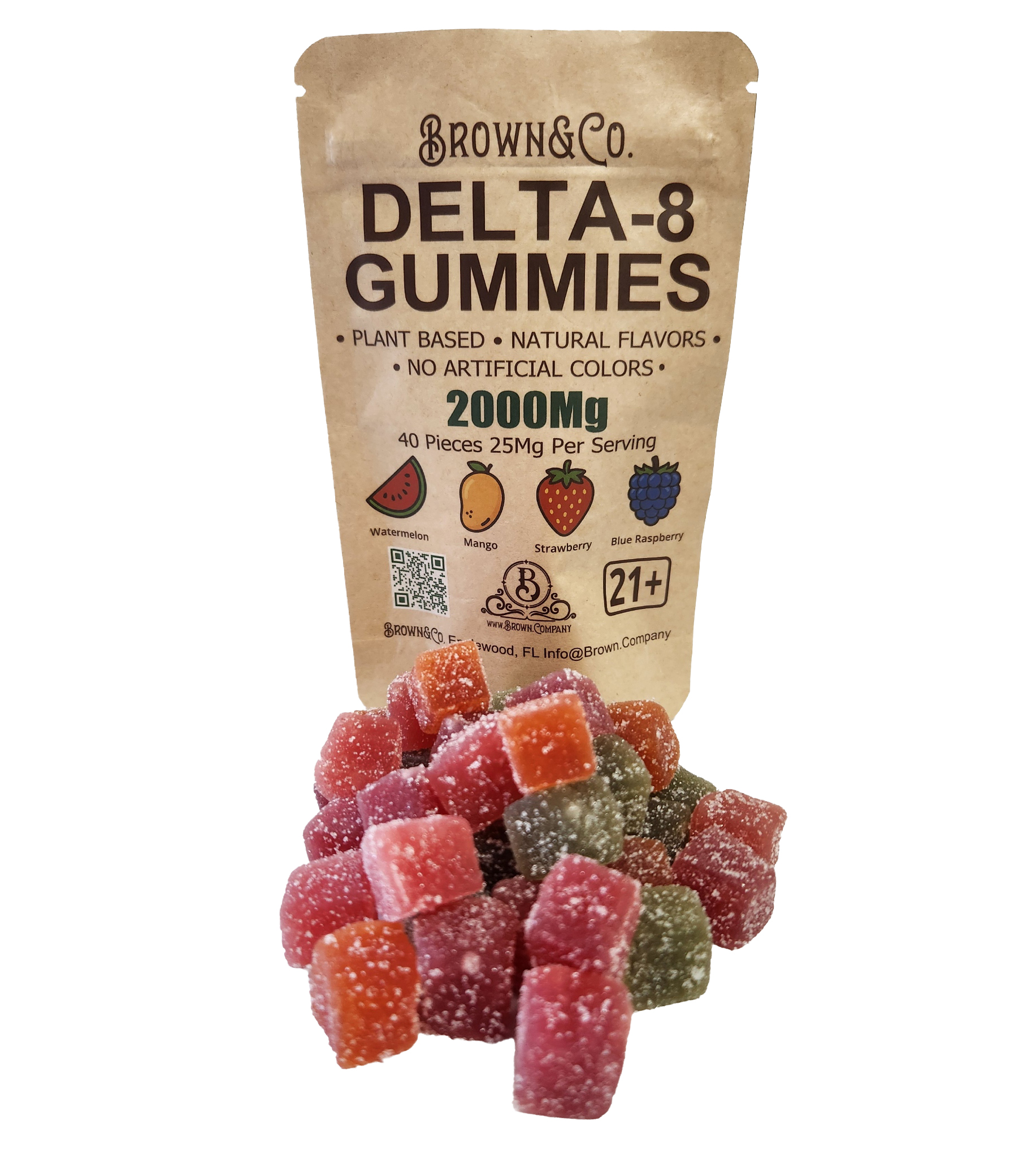 Our Delta 8 Gummies are made with no artificial flavors or colors. An all-natural, vegan, and really great-tasting gummy. Each piece has 25Mg of hemp-derived Delta 8 distillate. They contain less than 0.3% Delta 9 THC. They come in 4 delicious flavors, and we’re always experimenting with new flavors.